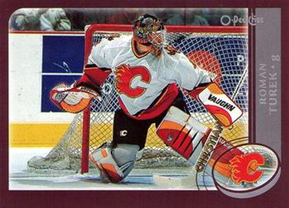 The Roman Turek 2002 O-Pee-Chee #98 Base card is 1 of 7 Roman Turek's card variations in the 2002 O-Pee-Chee set being tracked by Sports Card Investor, including Factory Set, Factory Set Hometown Heroes Canada, O-Pee-Chee Premier Blue Line /500, O-Pee-Chee Premier Red Line /100, and Box Toppers 3x5.