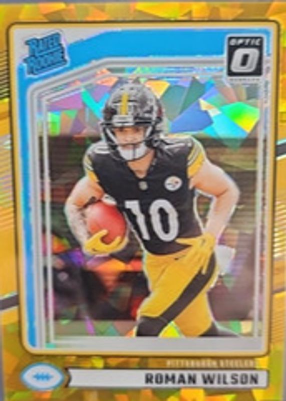 The Roman Wilson 2024 Donruss #348 Optic Preview - Gold Ice /10 Rookie card in Raw condition has not changed in price in the last 30 days and was last sold for $51.00 .