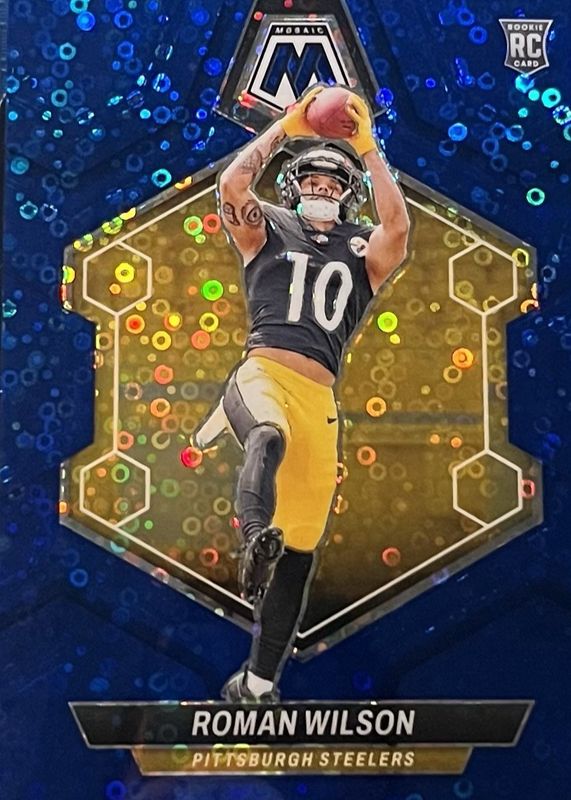 2024 Panini Mosaic Roman Wilson (RC) No Huddle Blue Rookie 3/75 #369 Steelers