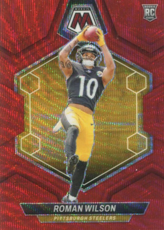 The Roman Wilson 2024 Mosaic #369 Red Wave /9 Rookie card in Raw condition has not changed in price in the last 30 days and was last sold for $25.00 .