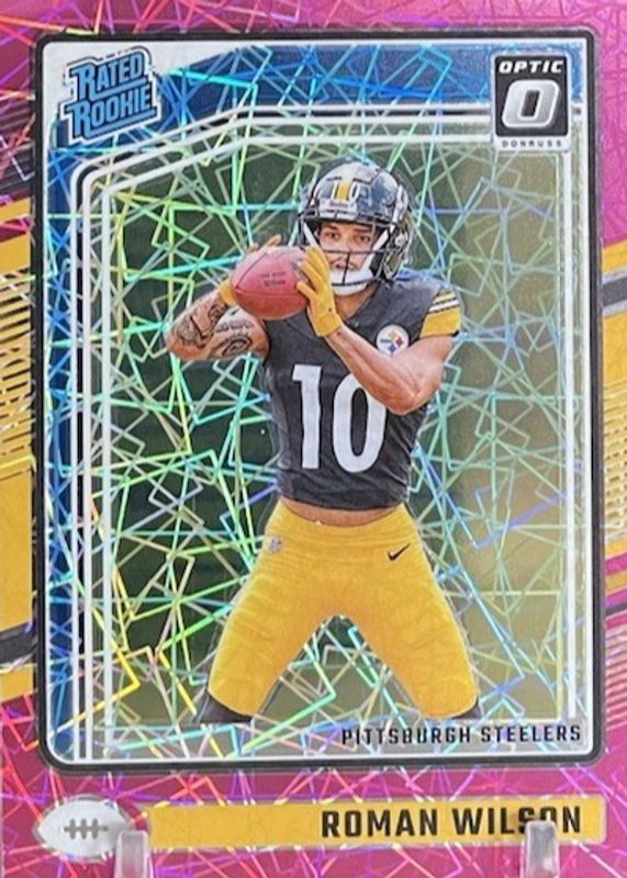 The Roman Wilson 2024 Optic #285 Pink Velocity /80 Rookie card in Raw condition has not changed in price in the last 30 days and was last sold for $12.00 .