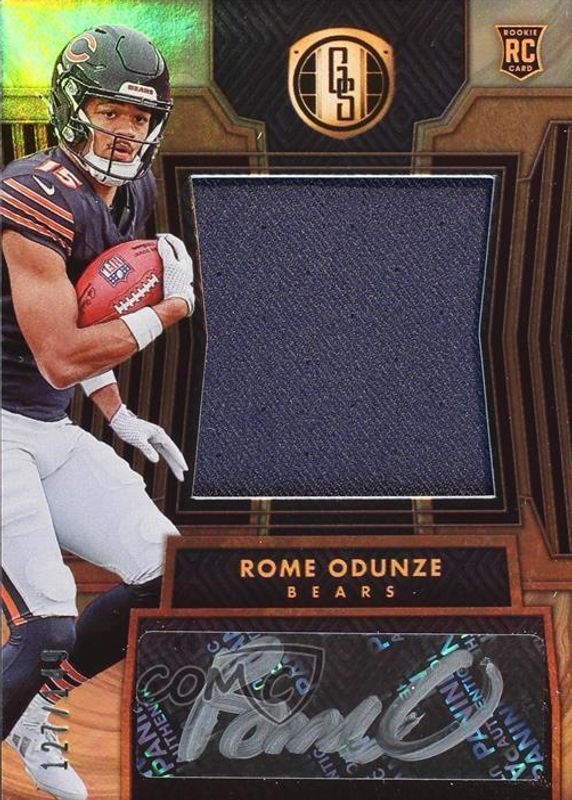 The Rome Odunze 2024 Gold Standard #244 Rookie Jersey Autographs Jumbo /149 card in Raw condition has not changed in price in the last 30 days and was last sold for $49.99 .