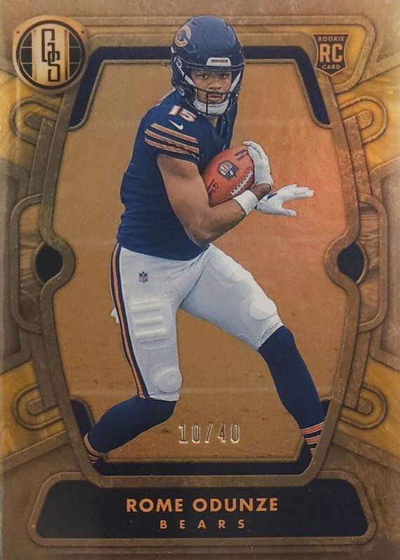 This card is 1 of 26 Rome Odunze's card variations in the 2024 Gold Standard set being tracked by Sports Card Investor, including Base /99, Platinum /75, White Gold /65, Citrine /40, and Violet /14.