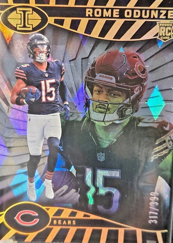This card is 1 of 25 Rome Odunze's card variations in the 2024 Illusions set being tracked by Sports Card Investor, including Base, Retail, Trophy Collection Dots, Trophy Collection Emerald, and Trophy Collection Galactic.