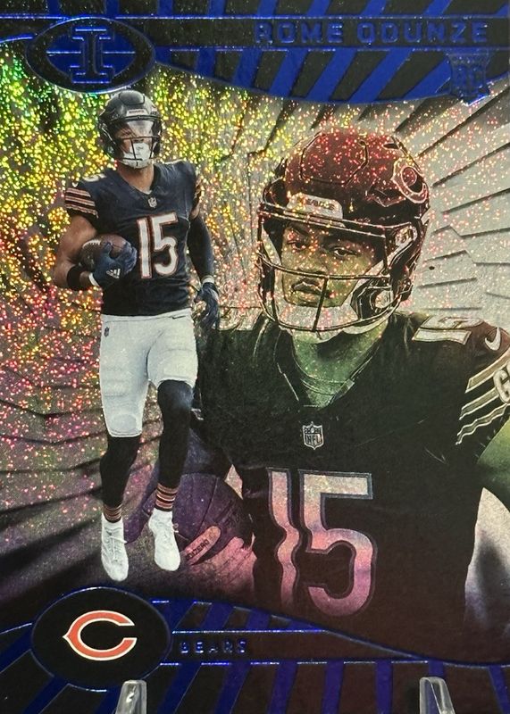 This card is 1 of 25 Rome Odunze's card variations in the 2024 Illusions set being tracked by Sports Card Investor, including Base, Retail, Trophy Collection Emerald, Trophy Collection Galactic, and Trophy Collection Orange.