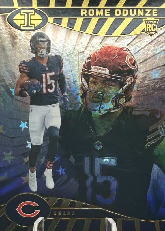 This card is 1 of 25 Rome Odunze's card variations in the 2024 Illusions set being tracked by Sports Card Investor, including Base, Retail, Trophy Collection Dots, Trophy Collection Emerald, and Trophy Collection Orange.