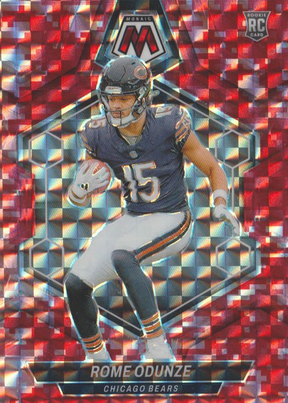 The Rome Odunze 2024 Mosaic #309 Red Camo Rookie card in Raw condition has not changed in price in the last 30 days and was last sold for $4.00 .