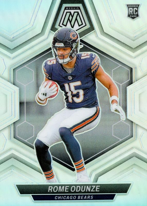 The Rome Odunze 2024 Mosaic #309 Silver Rookie card in Raw condition has not changed in price in the last 30 days and was last sold for $0.99 .