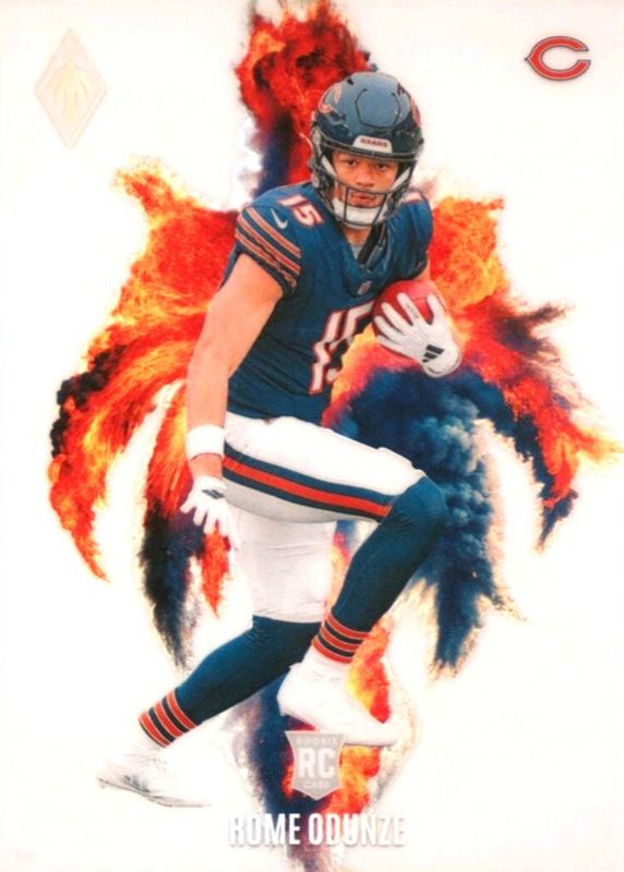 This card is 1 of 38 Rome Odunze's card variations in the 2024 Phoenix set being tracked by Sports Card Investor, including Contours, Contours - Hyper, Contours - Lazer, Contours - Orange, and Contours - Pandora.