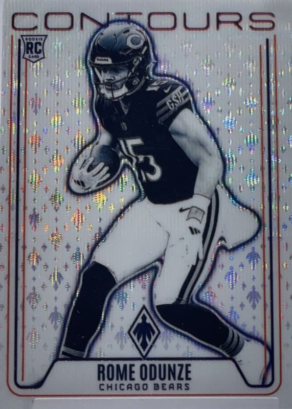 This card is 1 of 38 Rome Odunze's card variations in the 2024 Phoenix set being tracked by Sports Card Investor, including Contours, Contours - Hyper, Contours - Lazer, Contours - Orange, and Contours - Pandora.