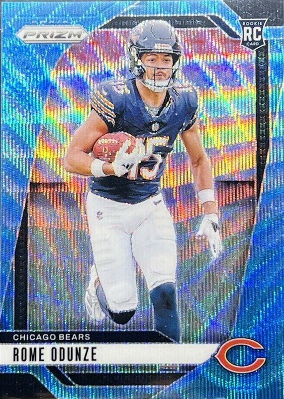 The Rome Odunze 2024 Prizm #385 Blue Wave /230 Rookie card in Raw condition has moved down -$5.00 (-16.7%) in the last 30 days and was last sold for $25.00 .