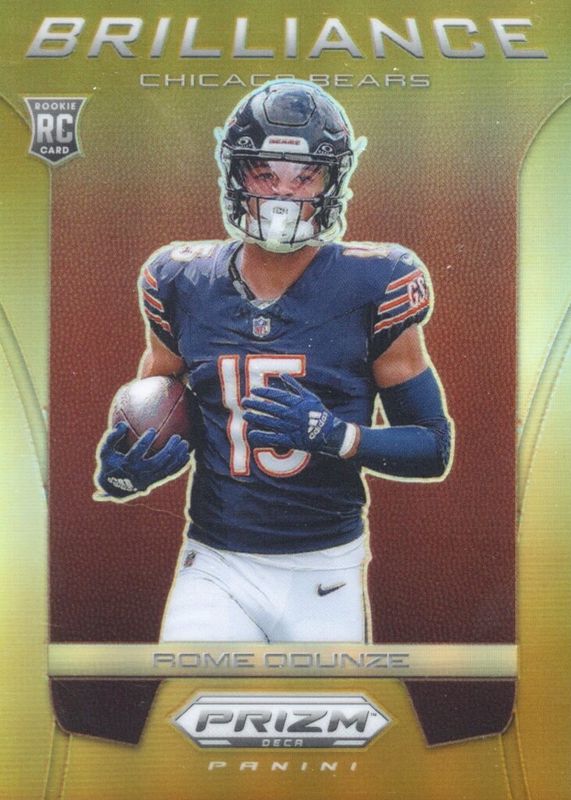 The Rome Odunze 2024 Prizm Deca #8 Brilliance - Gold /10 Rookie card in Raw condition has not changed in price in the last 30 days and was last sold for $202.50 .