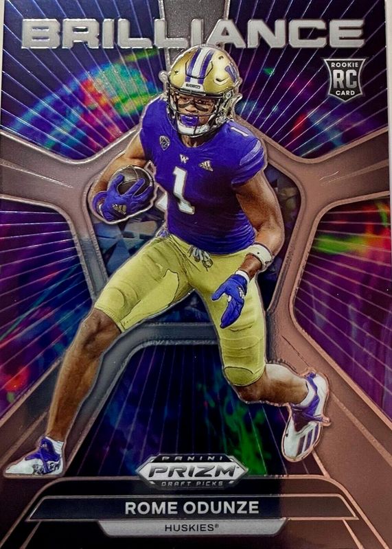 The Rome Odunze 2024 Prizm Draft Picks #BR-RO Brilliance Rookie card in Raw condition has moved down -$0.92 (-46.5%) in the last 30 days and was last sold for $1.06 .