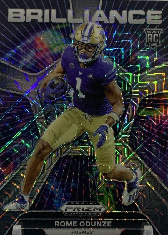 The Rome Odunze 2024 Prizm Draft Picks #BR-RO Brilliance - Mojo /25 Rookie card in Raw condition has not changed in price in the last 30 days and was last sold for $9.50 .