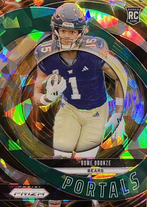 The Rome Odunze 2024 Prizm #9 Portals - Green Ice Rookie card in Raw condition has moved down -$0.26 (-11.6%) in the last 30 days and was last sold for $1.99 .