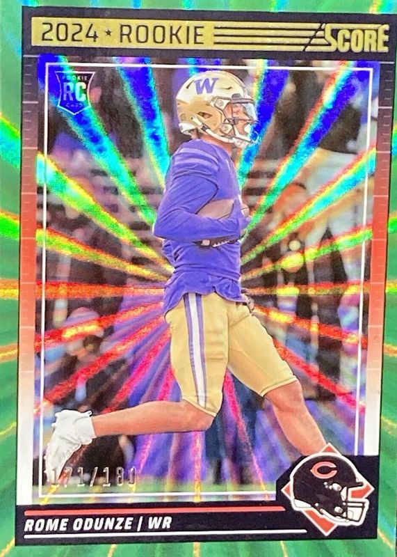 This card is 1 of 26 Rome Odunze's card variations in the 2024 Score set being tracked by Sports Card Investor, including Base, Gold, Green, Orange, and Purple.