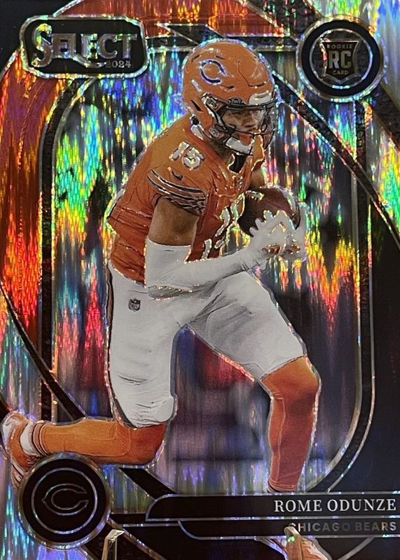 This card is 1 of 267 Rome Odunze's card variations in the 2024 Select set being tracked by Sports Card Investor, including Club Level, Concourse, Field Level, Premier Level, and Suite Level.