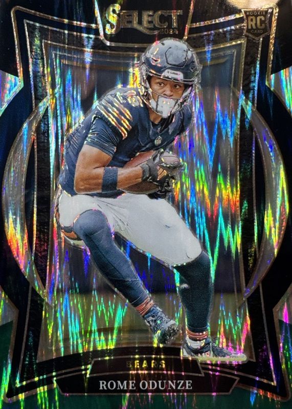 The Rome Odunze 2024 Select #3 Concourse Black & Green Shock Rookie card in Raw condition has moved up $0.52 (+52.5%) in the last 30 days and was last sold for $1.51 .