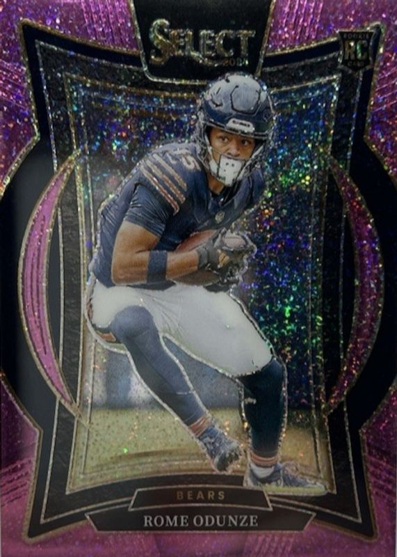 The Rome Odunze 2024 Select #3 Concourse Pink Glitter /15 Rookie card in Raw condition has not changed in price in the last 30 days and was last sold for $73.00 .