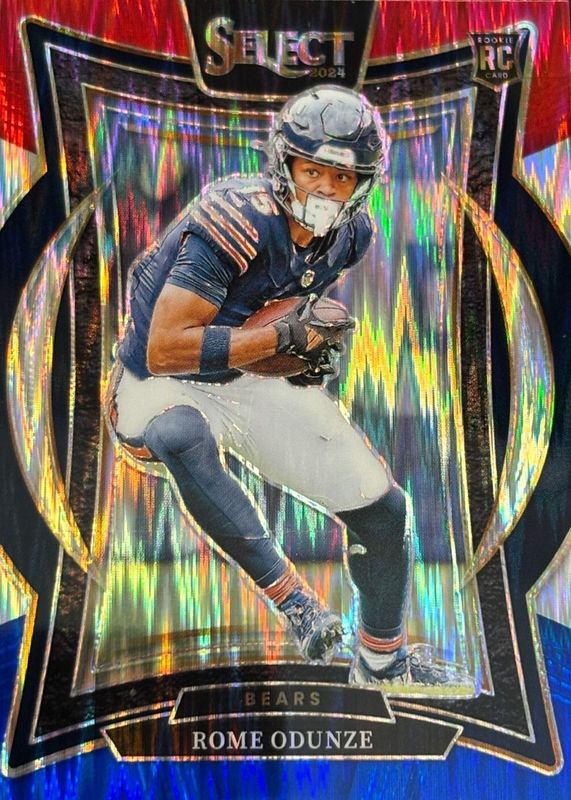 The Rome Odunze 2024 Select #3 Concourse Red & Blue Shock Rookie card in Raw condition has moved up $2.05 (+141%) in the last 30 days and was last sold for $3.50 .