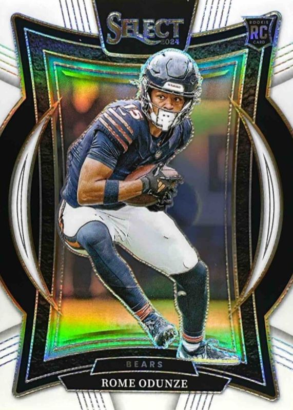 This card is 1 of 267 Rome Odunze's card variations in the 2024 Select set being tracked by Sports Card Investor, including Club Level, Concourse, Field Level, Premier Level, and Suite Level.
