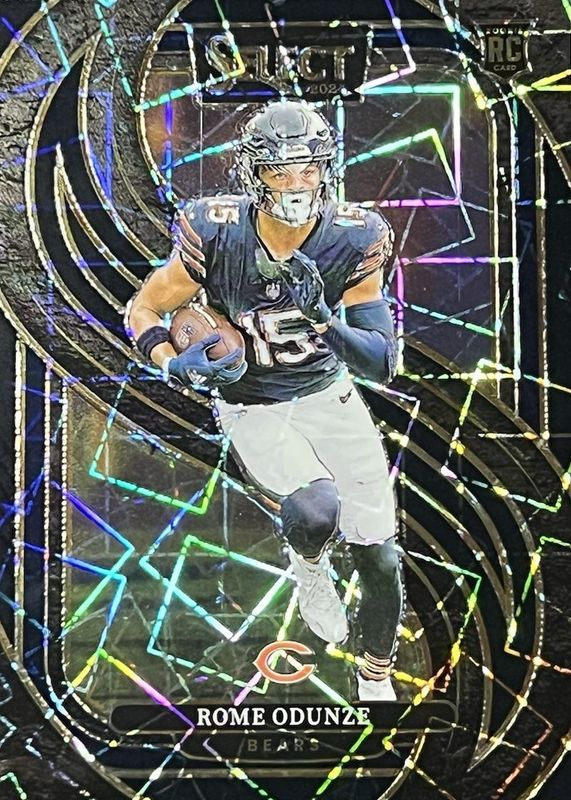 This card is 1 of 267 Rome Odunze's card variations in the 2024 Select set being tracked by Sports Card Investor, including Club Level, Concourse, Field Level, Premier Level, and Suite Level.