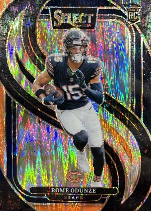 🔥🔥Rome Odunze 2024 Select Premier Level Rookie Black And Orange Shock Bears