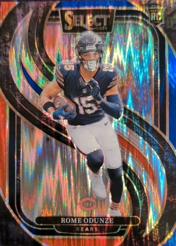 The Rome Odunze 2024 Select #136 Premier Level Red & Blue Shock Rookie card in Raw condition has moved down -$2.00 (-39.9%) in the last 30 days and was last sold for $3.00 .