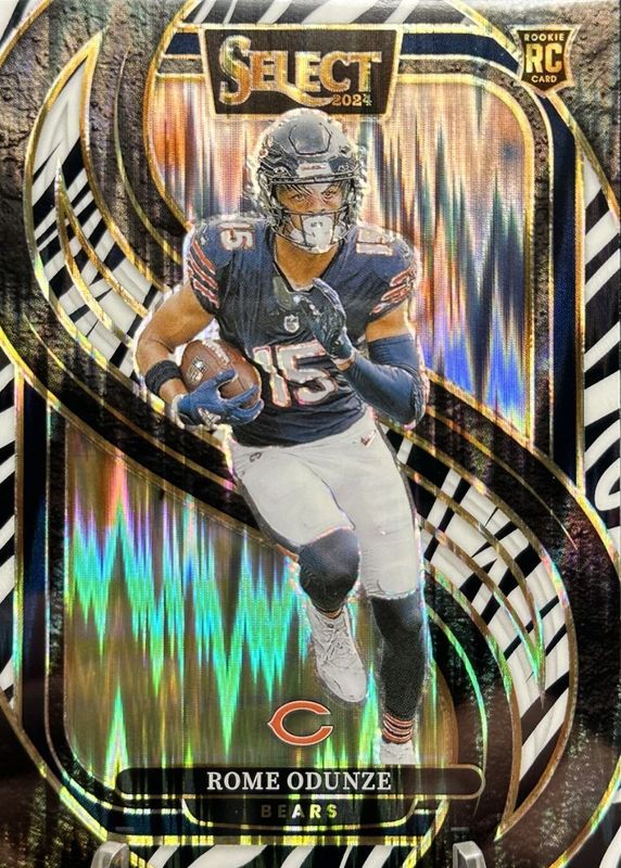 2024 Panini Select #136 Rome Odunze Zebra Prizm Shock Premier Level RC