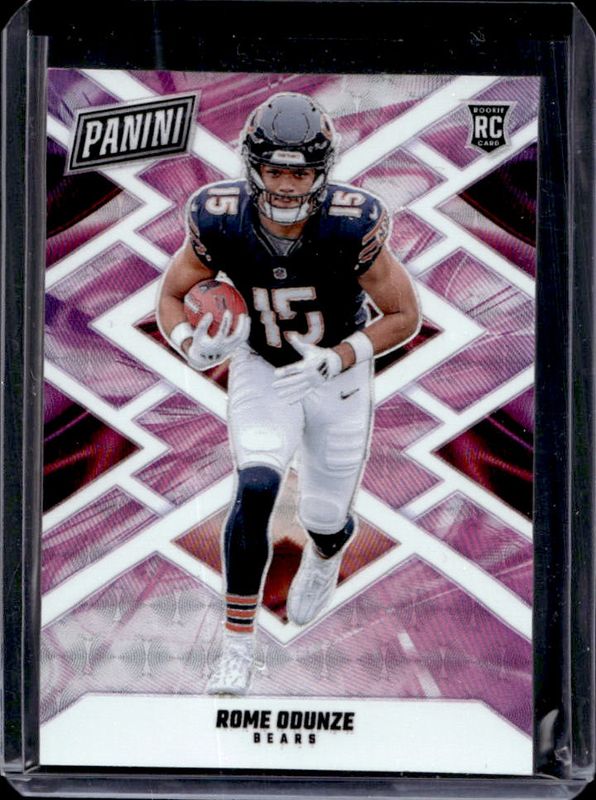 The Rome Odunze 2024 Panini Black Friday #RO Insert /99 card is 1 of 16 Rome Odunze's card variations in the 2024 Panini Black Friday set being tracked by Sports Card Investor, including Base, Holo /150, Red /125, Blue /50, and Autographs /25.