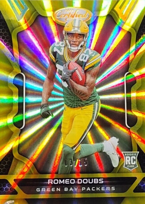 2022 Panini Certified ROMEO DOUBS Mirror Gold Rookie #'d /15 #134 Packers FOTL