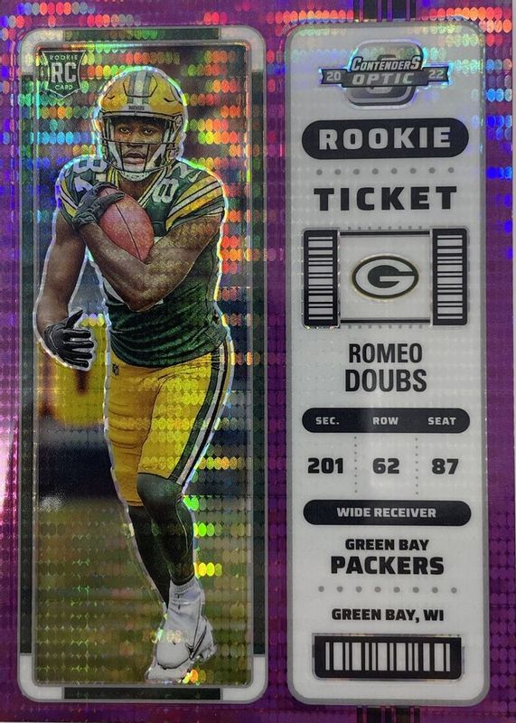 Recent Sales of Romeo Doubs 2022 Contenders Optic #89 Purple Pulsar /26 Rookie Raw