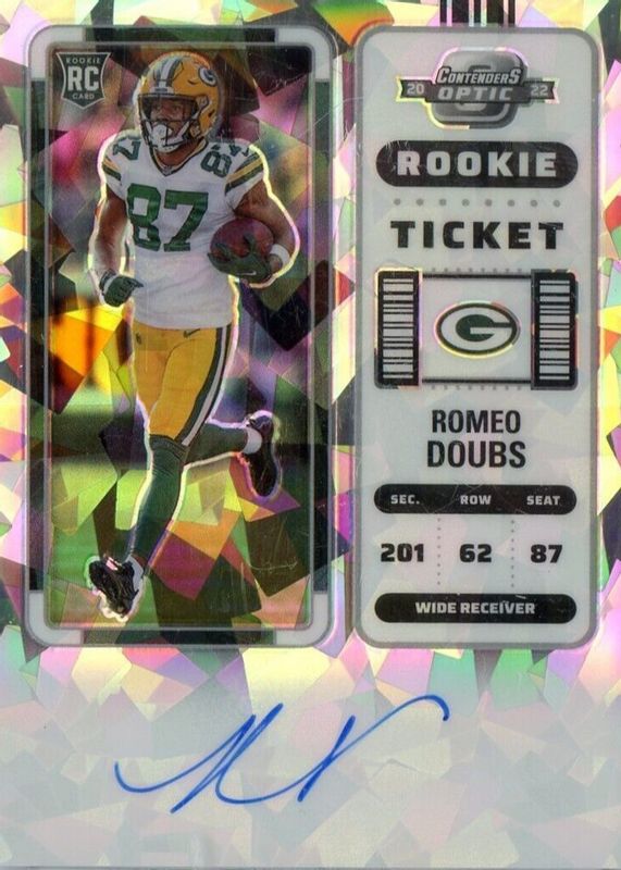 Romeo Doubs 2022 Contenders Optic #132 Rookie Ticket Auto - Cracked Ice Ticket /22 RAW Price Guide
