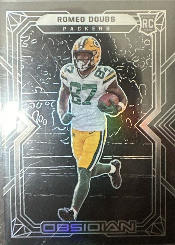 This card is 1 of 19 Romeo Doubs' card variations in the 2022 Obsidian set being tracked by Sports Card Investor, including Electric Etch Purple /100, Electric Etch Orange /75, Electric Etch Contra /(SSP), Electric Etch Green /50, and Electric Etch Red Flood /29.