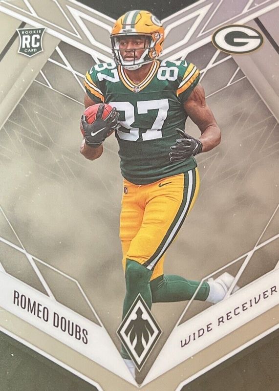 This card is 1 of 27 Romeo Doubs' card variations in the 2022 Phoenix set being tracked by Sports Card Investor, including Color Burst, Onyx (/5), Red Mojo (/10), Silver, and Silver Lazer.
