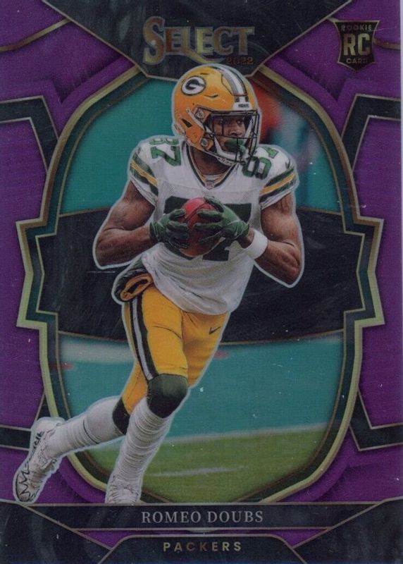 The Romeo Doubs 2022 Select #54 Concourse Purple /75 Rookie card in Raw condition has not changed in price in the last 30 days and was last sold for $1.99 .