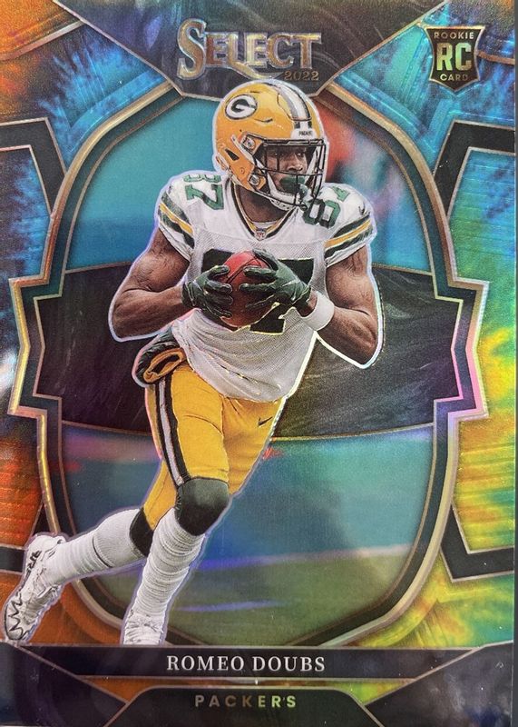 This card is 1 of 63 Romeo Doubs' card variations in the 2022 Select set being tracked by Sports Card Investor, including Concourse, Field Level, Concourse Black & Green Die-Cut, Concourse Black & Red Die-Cut, and Concourse Disco.