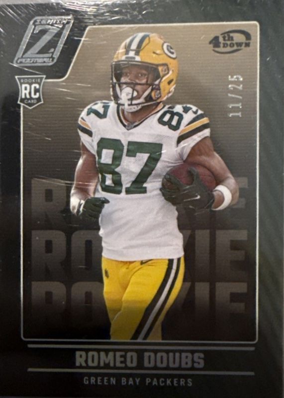 Recent Sales of Romeo Doubs 2022 Zenith #135 4th Down /25 Rookie Raw