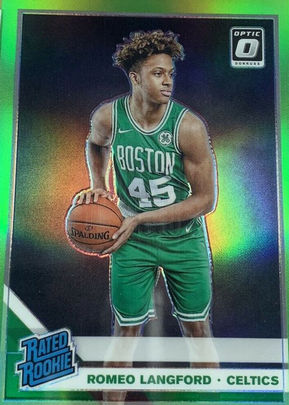The Romeo Langford 2019 Optic #182 Lime Green /149 Rookie card in Raw condition has not changed in price in the last 30 days and was last sold for $2.50 .