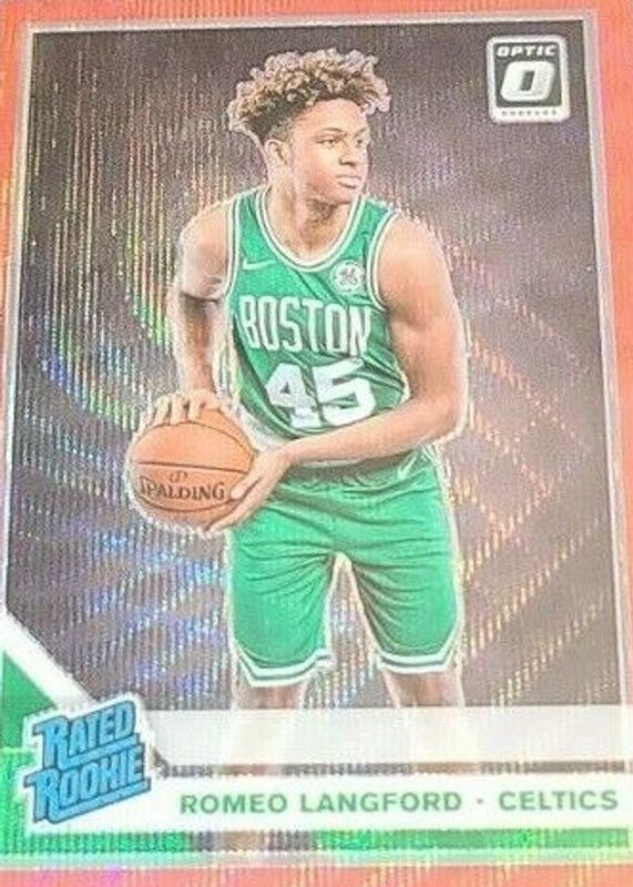 The Romeo Langford 2019 Optic #182 Tmall Red Wave Rookie card in Raw condition has not changed in price in the last 30 days and was last sold for $2.25 .