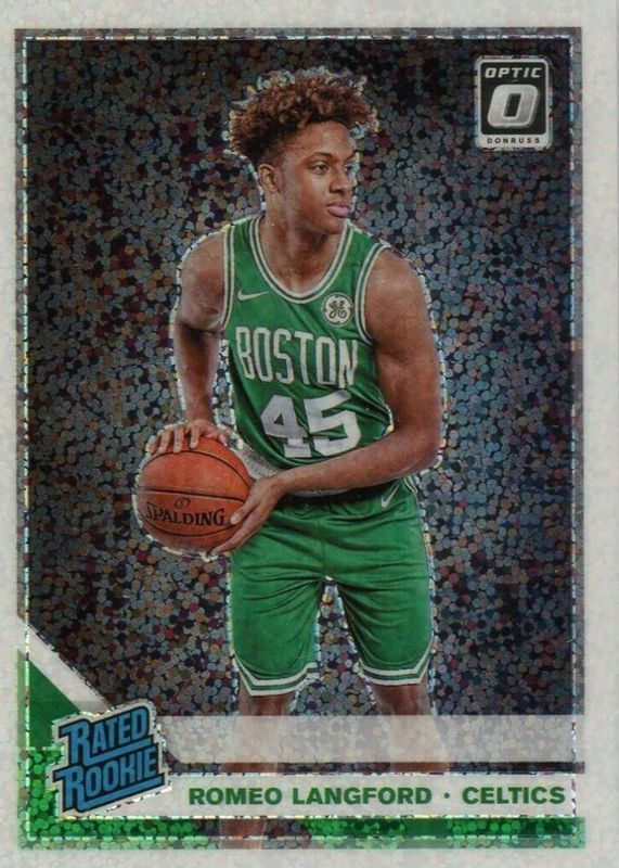 This card is 1 of 67 Romeo Langford's card variations in the 2019 Optic set being tracked by Sports Card Investor, including Base, Blue Velocity, Checkerboard, Choice, and Choice Red & Green.