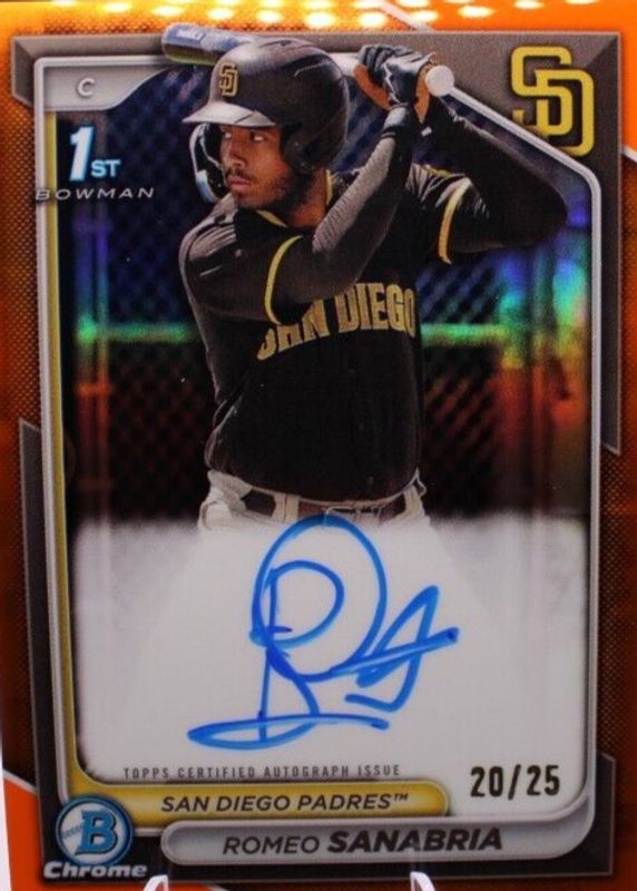 Best Prices Available For Sale of Romeo Sanabria 2024 Bowman Chrome #CPA-RS Prospect Auto - Orange Refractor /25 (1st)