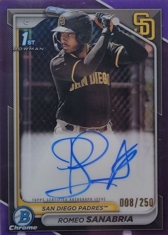 2024 Bowman Chrome Romeo Sanabria Auto Purple Refractor 1st #87/250