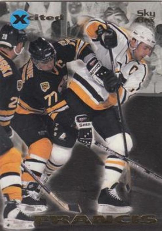 The Ron Francis 1995 Skybox E-Motion #11 Xcited card is 1 of 3 Ron Francis' card variations in the 1995 Skybox E-Motion set being tracked by Sports Card Investor, including Base, and Xcel.