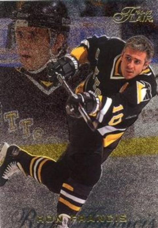 The Ron Francis 1996 Flair #75 Base card is 1 of 2 Ron Francis' card variations in the 1996 Flair set being tracked by Sports Card Investor, including Blue Ice Collection /250.