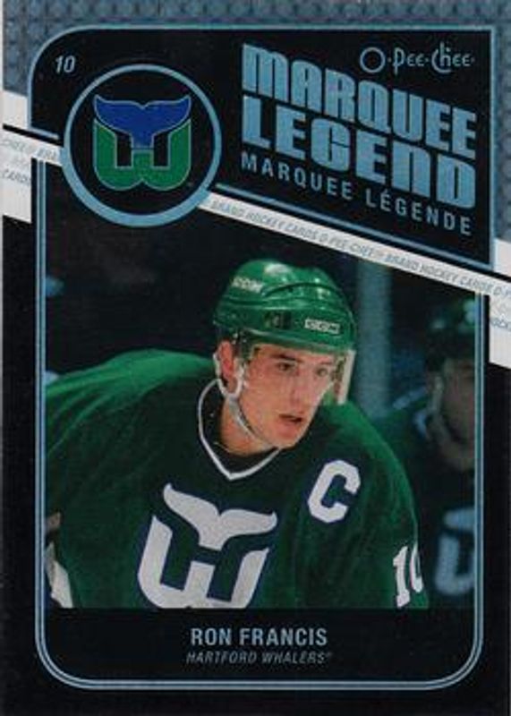 The Ron Francis 2011 O-Pee-Chee #530 Black Rainbow /100 card is 1 of 6 Ron Francis' card variations in the 2011 O-Pee-Chee set being tracked by Sports Card Investor, including Base, Rainbow, Retro, Retro Blank Back, and Marquee Legends.