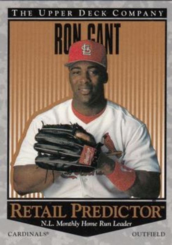The Ron Gant 1996 Upper Deck #R33 Predictors: Retail card is 1 of 4 Ron Gant's card variations in the 1996 Upper Deck set being tracked by Sports Card Investor, including #152 Base, #443 Base, and #R33 Predictors Exchange: Retail.