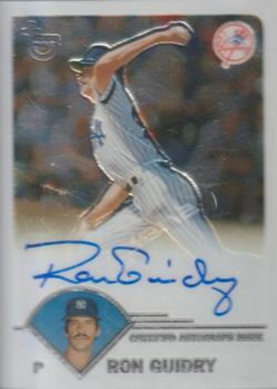 The Ron Guidry 2003 Topps Retired Signature Edition #TA-RGU Autographs card is 1 of 4 Ron Guidry's card variations in the 2003 Topps Retired Signature Edition set being tracked by Sports Card Investor, including Base, Black /99, and Autographs - Refractor /25.