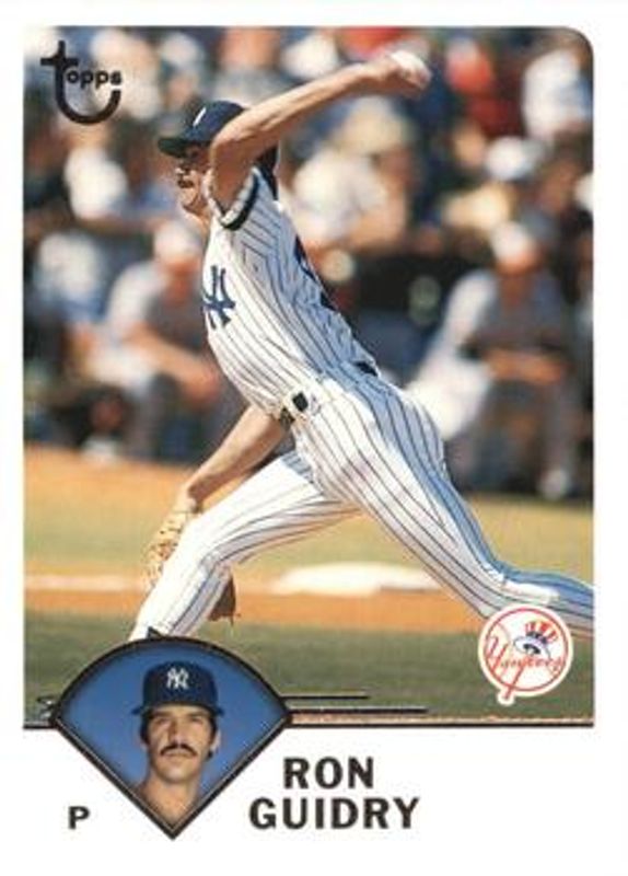 The Ron Guidry 2003 Topps Retired Signature Edition #54 Base card is 1 of 4 Ron Guidry's card variations in the 2003 Topps Retired Signature Edition set being tracked by Sports Card Investor, including Black /99, Autographs, and Autographs - Refractor /25.