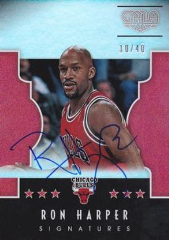 Ron Harper's Basketball cards are available in at least 116 sets. Ron Harper's biggest 7-day price movers are 2015 Gala #S-RHP Signatures /40, 2015 Luxe #LX-RHP Luxe Autographs - Sapphire /25, and 2015 Black Gold #30 Vintage Gold Autographs /149.